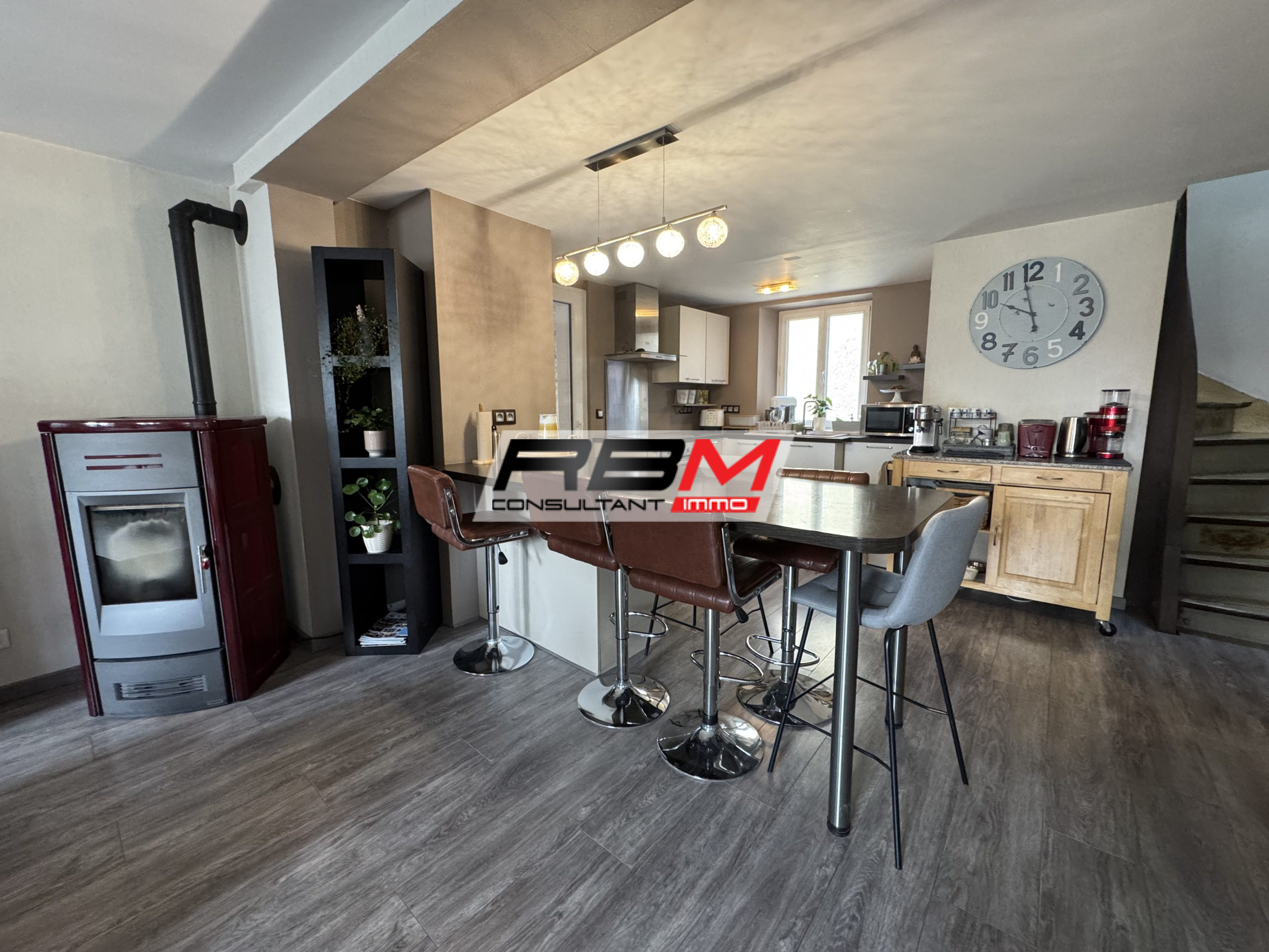 La maison dévoile un esprit authentique et accueillant. Le séjour spacieux, équipé d’un poêle à granulés récent, s’ouvre sur une cuisine conviviale où l’on imagine facilement les repas en famille. Le salon dans une pièce dédié, doté d’un chauffage au sol, offre un espace cocooning parfait pour les soirées d’hiver. Une salle de bains et un WC séparé complètent ce niveau. Depuis la pièce de vie, on accède également à la terrasse et au garage attenant, pratique au quotidien.
